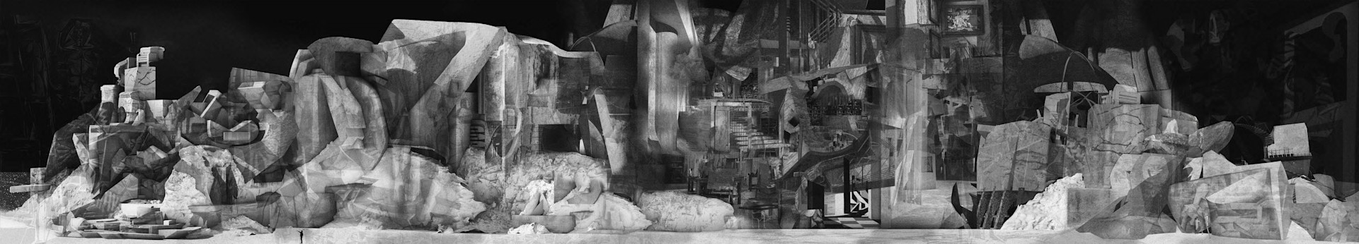 The panorama shows multiple views of ever-changing spaces and their temporal nature. This architectural visualisation acts in the same way that one would walk around a space, revealing angles and perspectives that are truer to real life experiences.